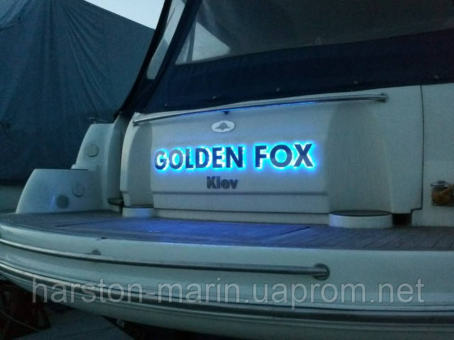 Світні назви яхт, логотипи, герби, букви з підсвіткою